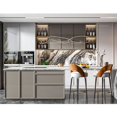 Laca personalizada para el hogar de alta calidad, otros exportadores de muebles de cocina, armarios de cocina modulares de madera en forma de L